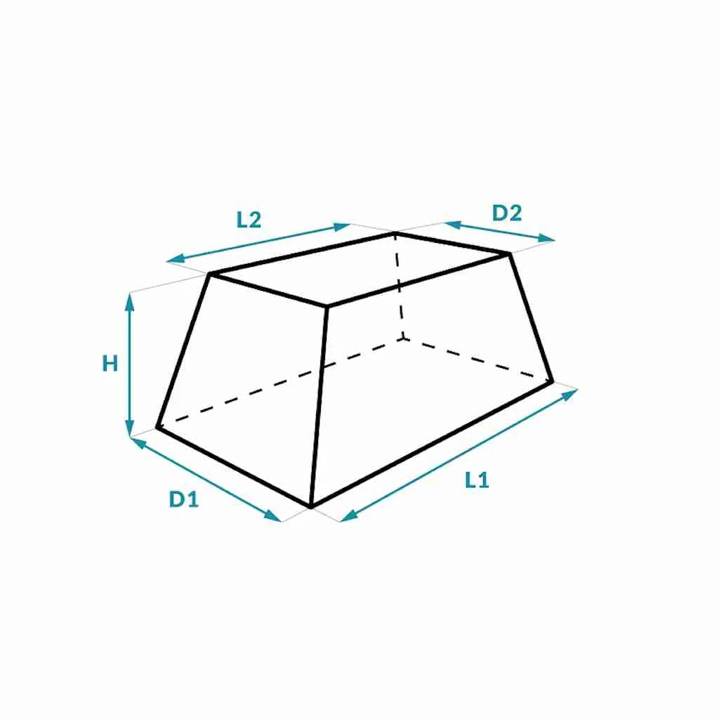 Die Form G1 verfügt über zwei verschiedene Längen, zwei verschiedene Tiefen und eine Höhe. Sie hat zwei abgeschrägte Kanten, wodurch sie sich ideal an verschiedene Objekte anpasst und eine präzise Passform gewährleistet.