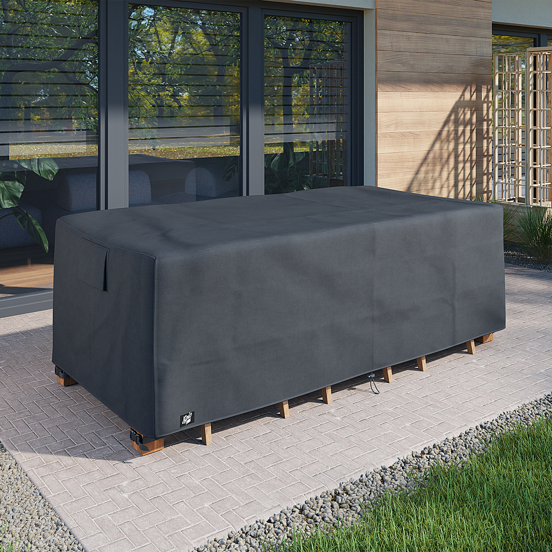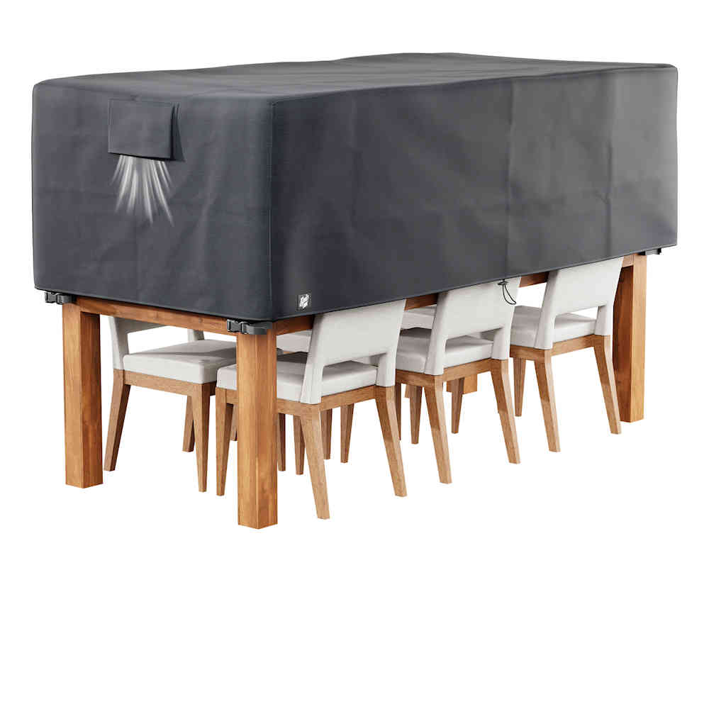 Gefertigt aus hochwertigem Oxford 600D Polyester überzeugt die Abdeckung durch außergewöhnliche Robustheit, 100 % Wasserdichtigkeit, versiegelte Nähte sowie hohe UV-Beständigkeit. So bleiben Ihre Möbel das ganze Jahr über geschützt – bei Regen, Schnee, Wind oder starker Sonneneinstrahlung.